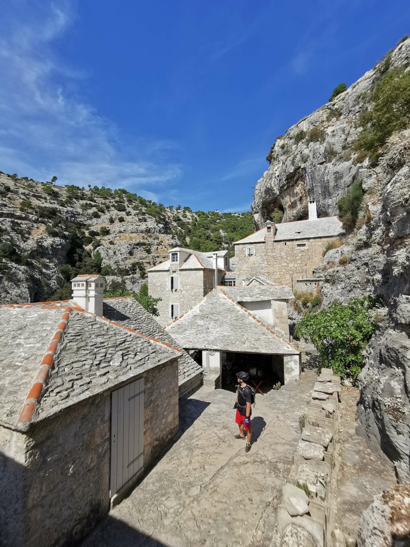 On the way back down the loose-rock singletrack, you can stop to explore Blaca, a 16th-century monastery carved into the side of a limestone cliff. It was used as a refuge point and place of worship by old Croat monks and nowadays operates as a museum to protect all of the historical artifacts still inside.